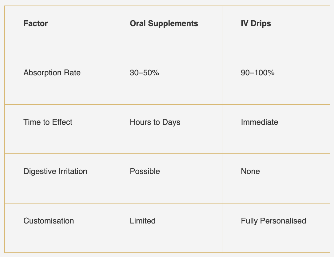 Oral Supplements vs Vitamin Drips: What’s the Difference?